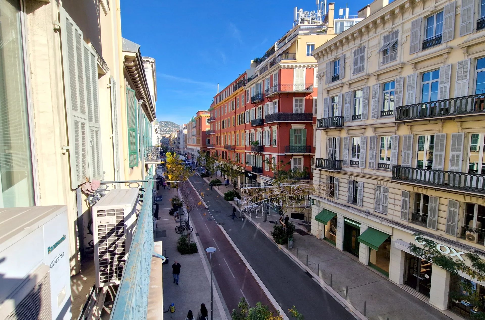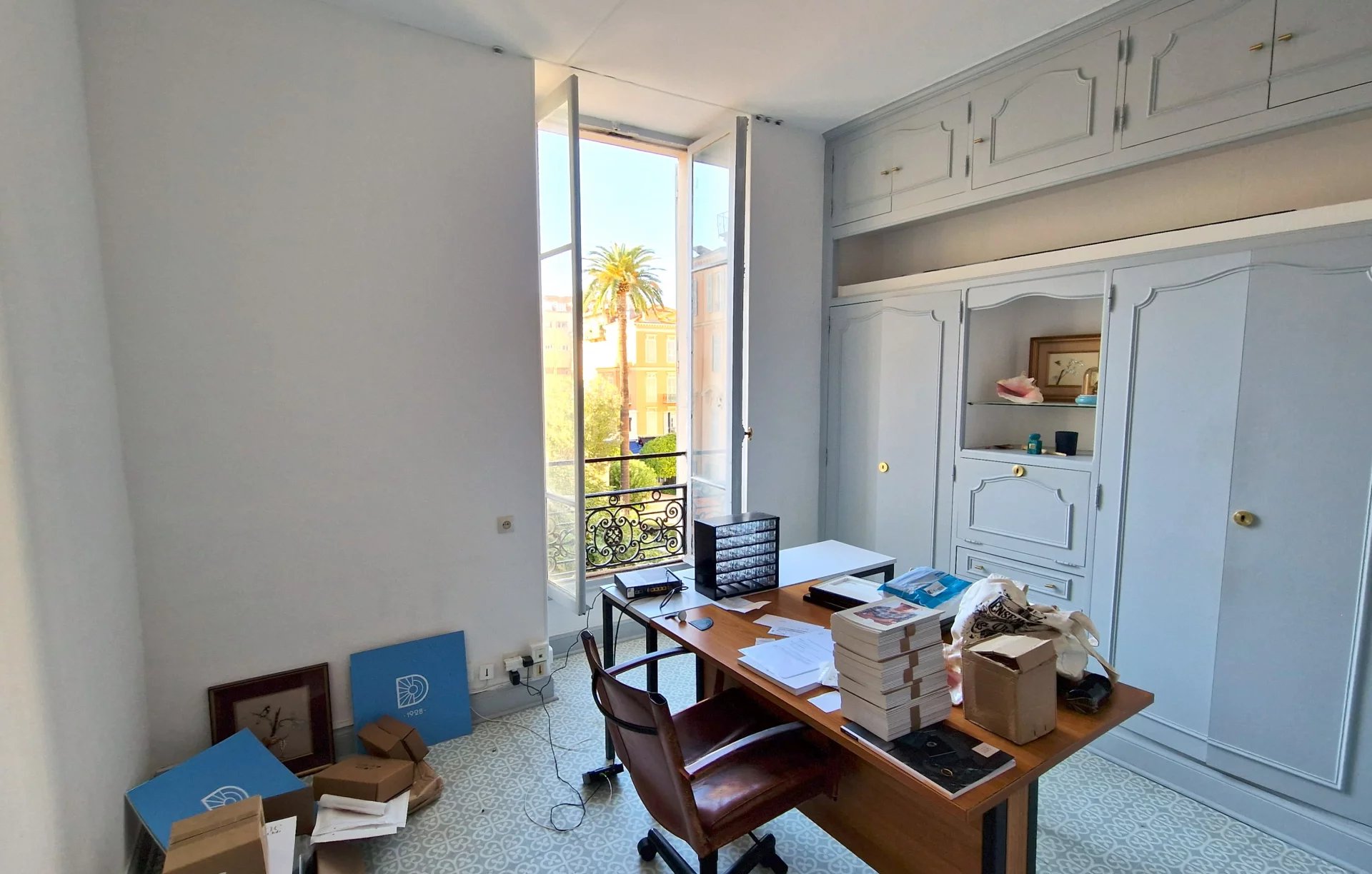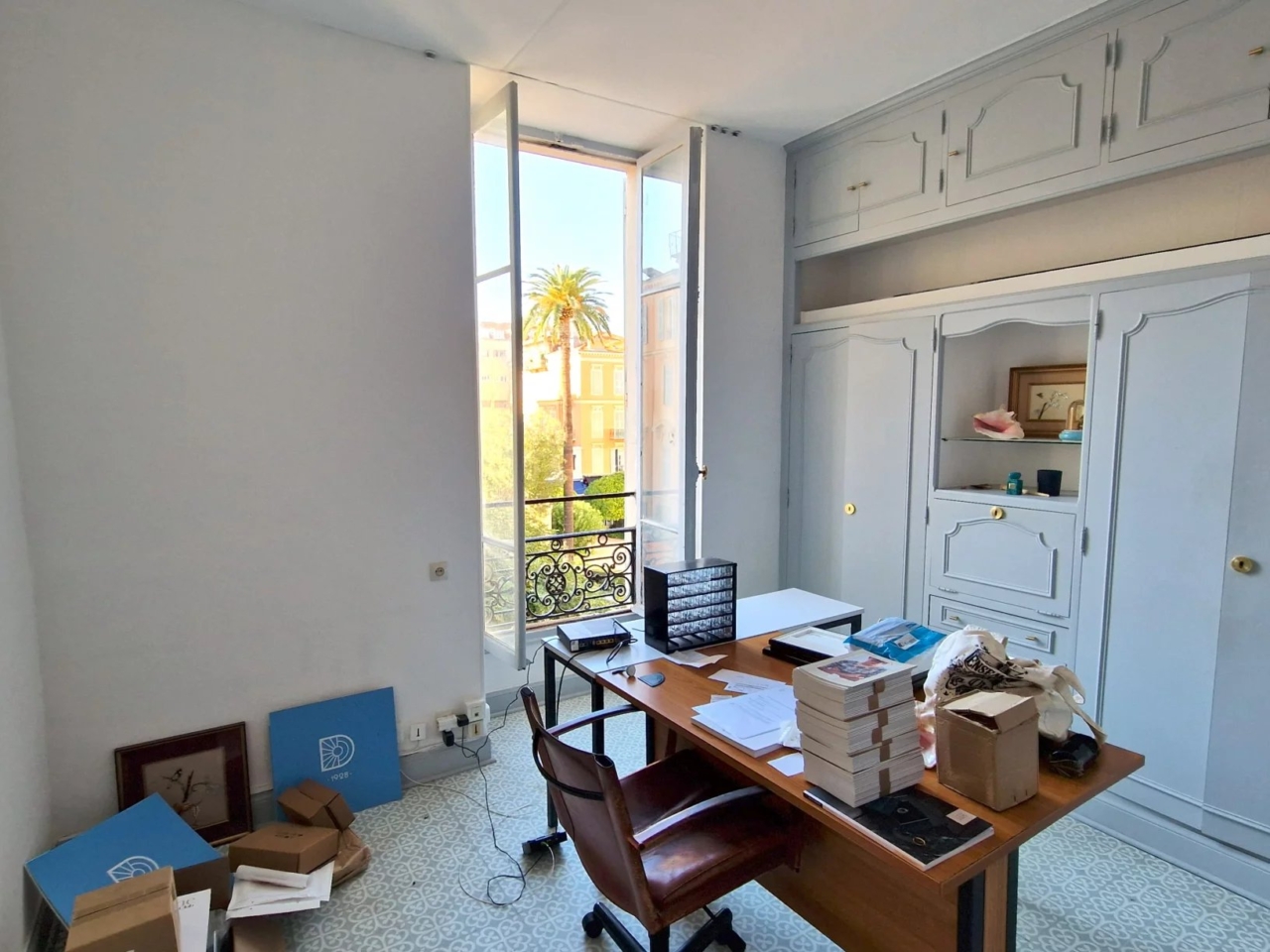 Situé dans un bel immeuble niçois, ce bien baigné de lumière offre un volume exceptionnel qui occupe tout un étage entier.