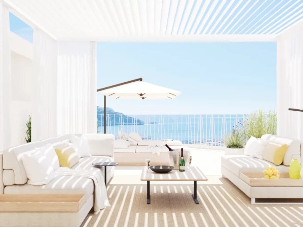 Toutes les pièces donnent sur les terrasses de 150 m². Ces terrasses intimistes, dont certaines sans aucun vis-à-vis, sont de véritables joyaux qui viennent sublimer l’appartement.