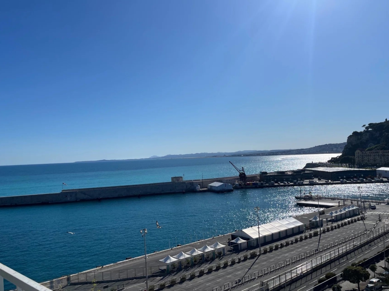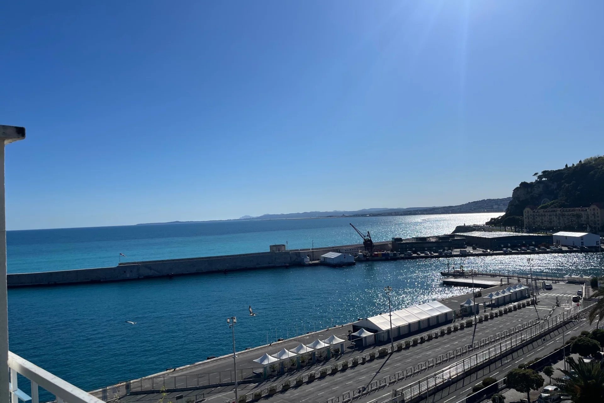 En bas du Mont Boron, pied dans l’eau, à l’entrée du port Lympia de Nice, sur le très renommé et très recherché boulevard Franck Pilatte, en bord de mer.