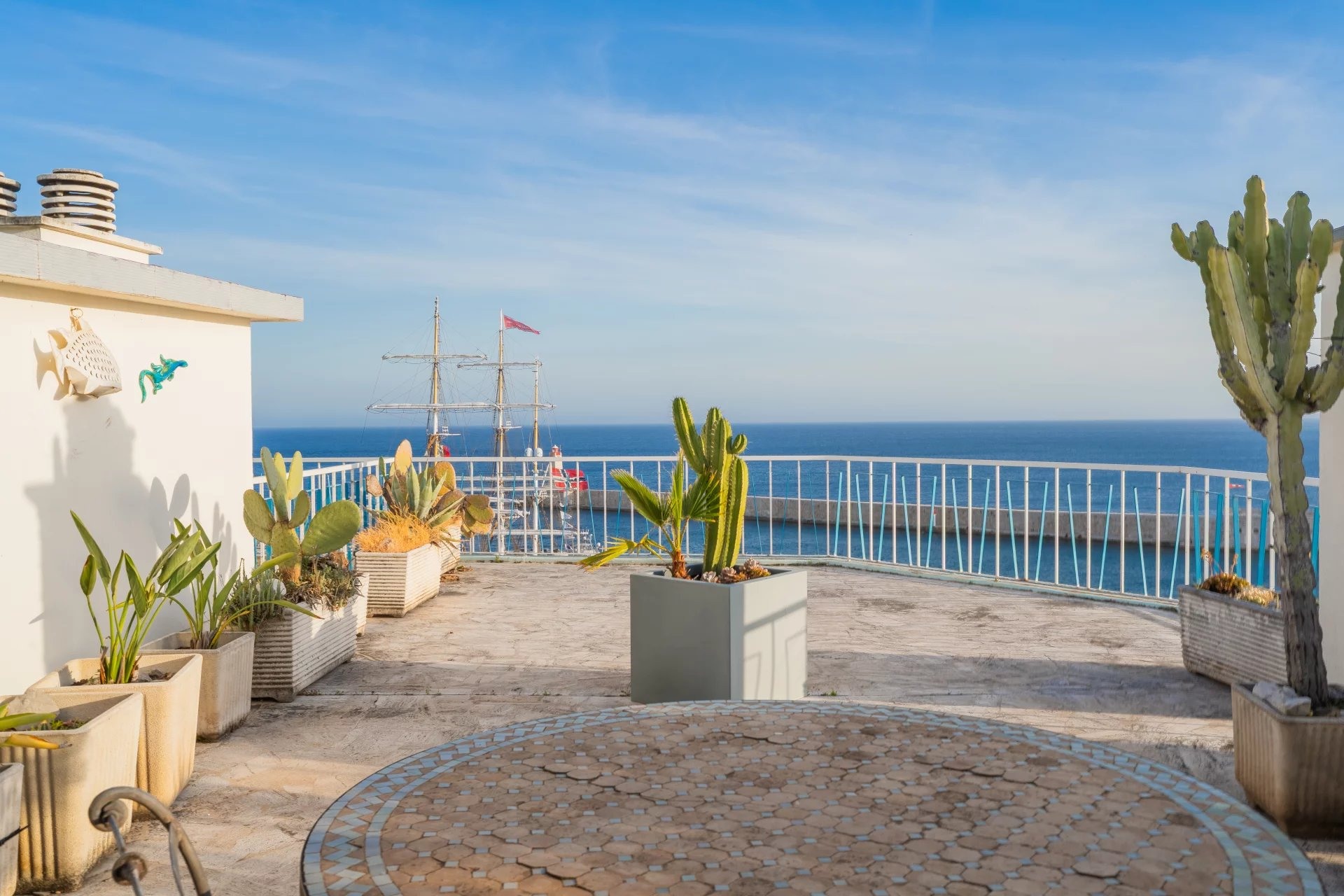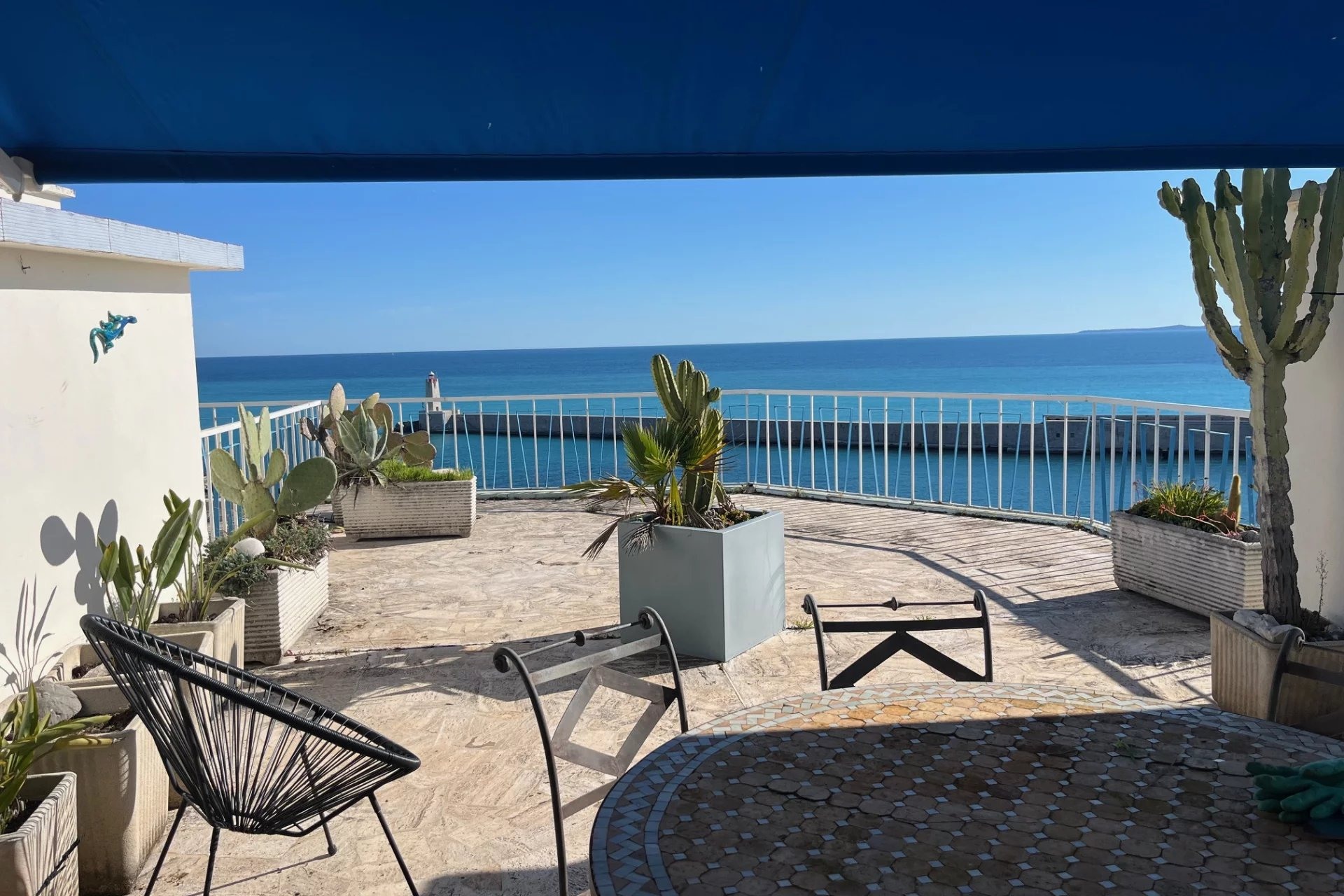 Nous avons le plaisir de vous présenter en exclusivité ce rarissime appartement en dernier étage avec vue panoramique sur la mer, l’entrée du port, la baie des Anges, ainsi que le Mont Boron.