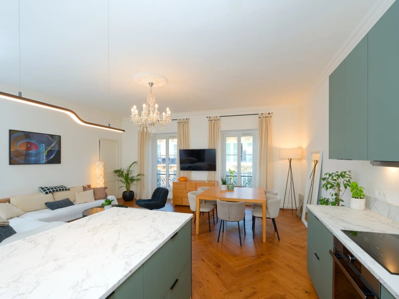 4 PIECES – NICE (CENTRE VILLE) LES POINTS FORTS DE L’APPARTEMENT : ENTIEREMENT RENOVE / BELLES SURFACES / TRAVERSANT EXPOSITION EST-OUEST. NICE- CENTRE VILLE Très beau 4 pièces de 91 m2, en étage élevé avec ascenseur, entièrement rénové avec goût, très beaux volumes, exposition est-ouest, belle hauteur sous plafonds. Ce bien se compose d’un séjour/salle à manger lumineux, d’une cuisine ouverte toute équipée, de trois chambres, d’une très belle salle de bain avec baignoire, douche et toilette ainsi qu’un toilette indépendant. Situé à proximité de toutes commodités, nombreux commerces, restaurants, écoles,collèges et lycées, bus et tram. Une cave complète ce bien. Possibilité de louer un stationnement.