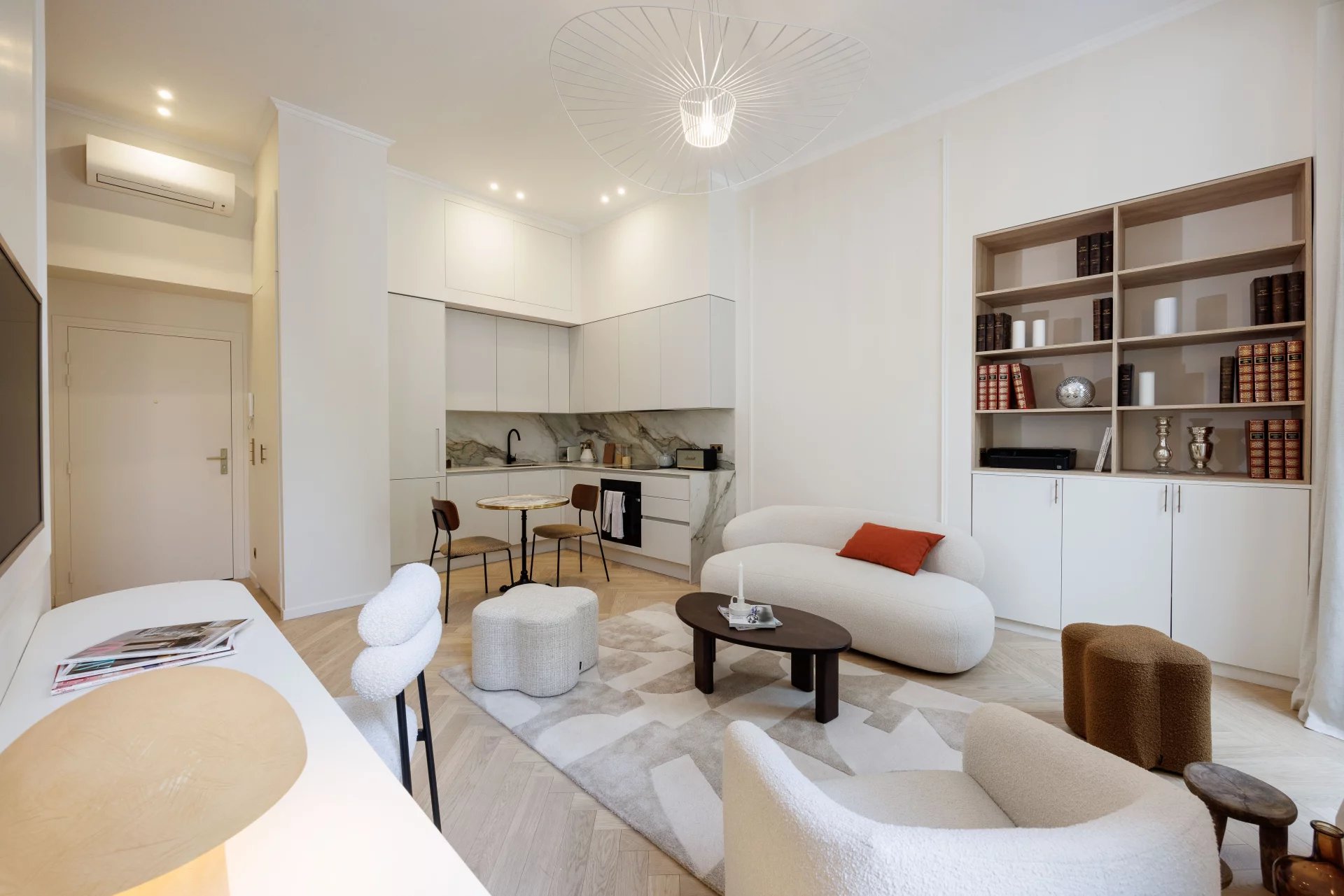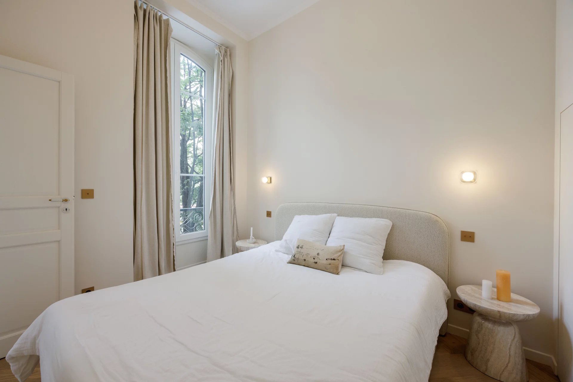 Un bijou! Plein coeur de Nice, non loin de la mer, dans un bel immeuble ancien avec ascenseur, splendide 2 Pièces 47m2 (41m2 loi carrez) rénové dans un style chic et raffiné par un architecte, bénéficiant de beaux volumes et de prestations haut de gamme (parquet massif, marbre, climatisation etc)