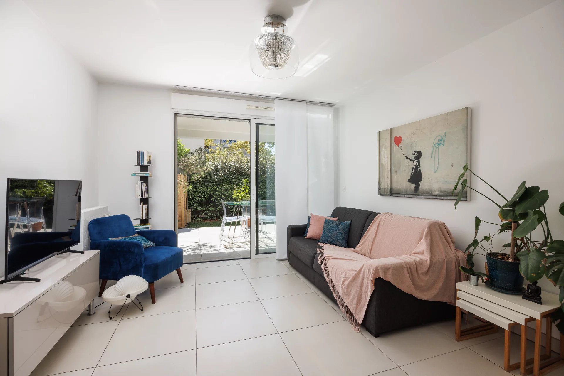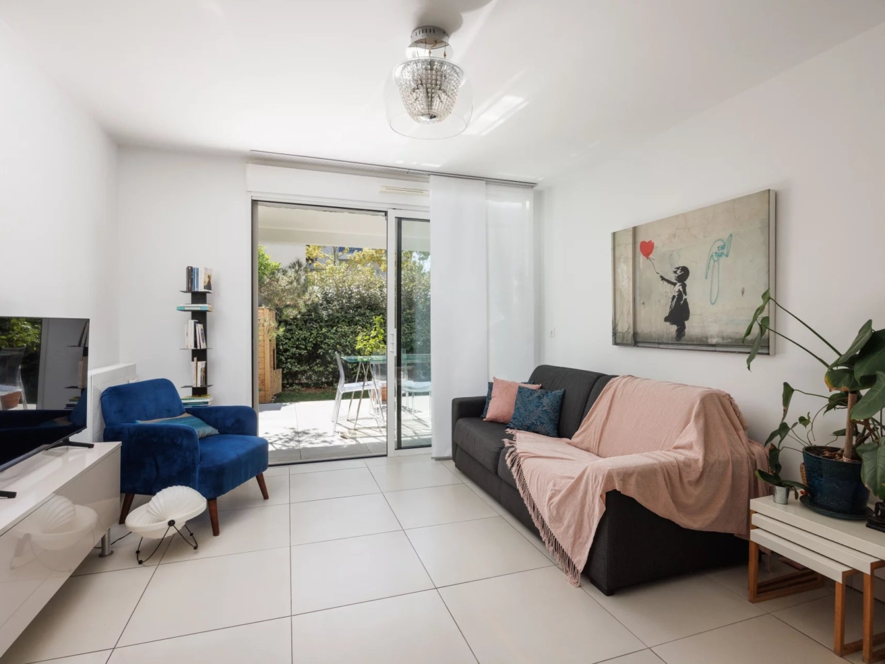 Dans une jolie résidence de standing de 2020 avec piscine et au calme absolu: très beau trois pièces de 53m2 exposé au Sud, donnant sur un espace extérieur de 50m2 avec terrasse et jardin.