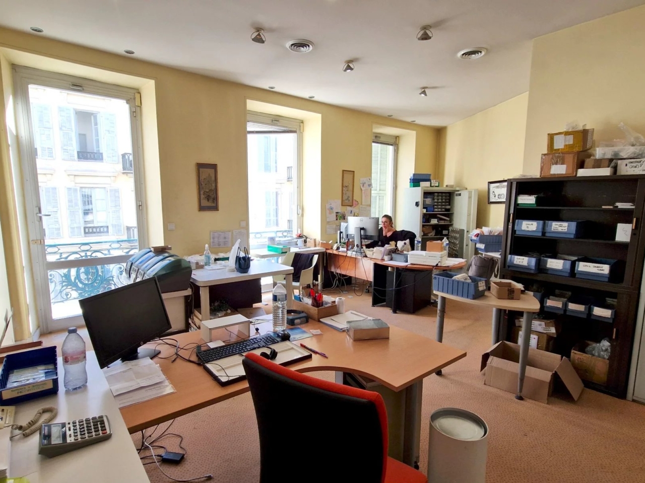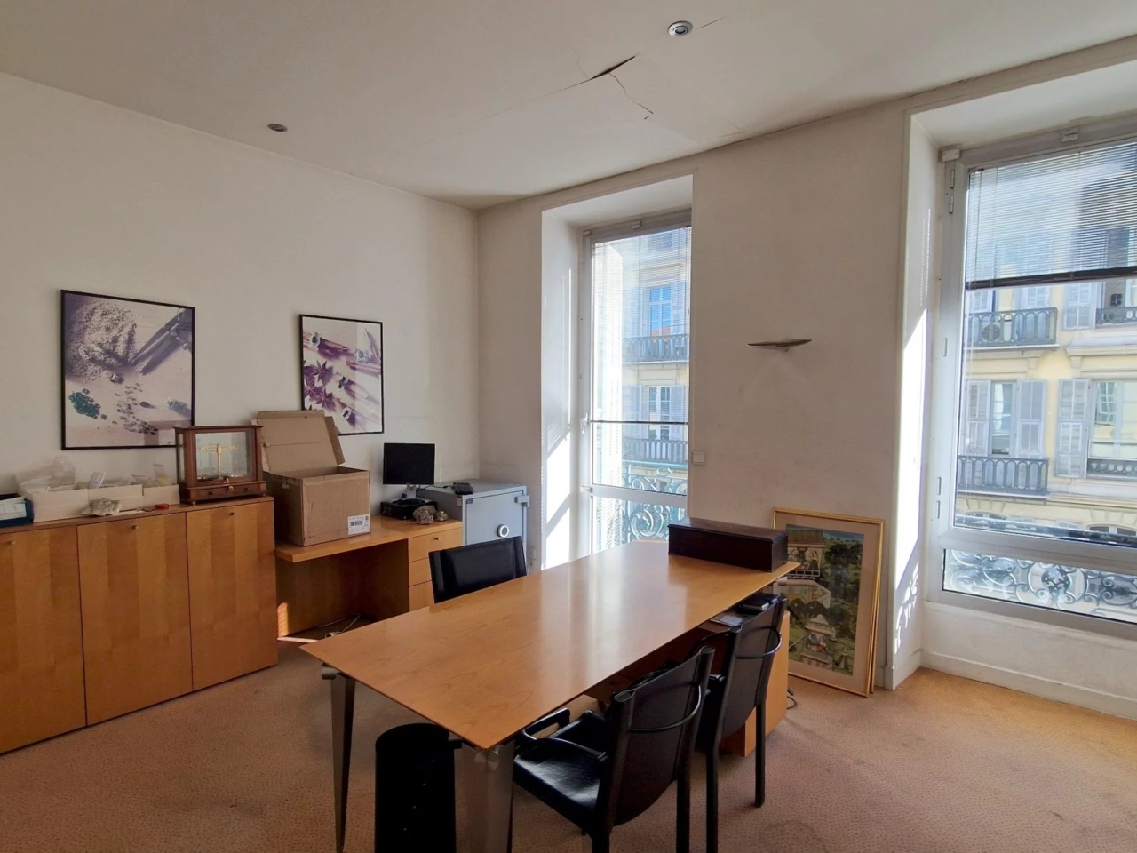 Situé dans un bel immeuble niçois, ce bien baigné de lumière offre un volume exceptionnel qui occupe tout un étage entier.